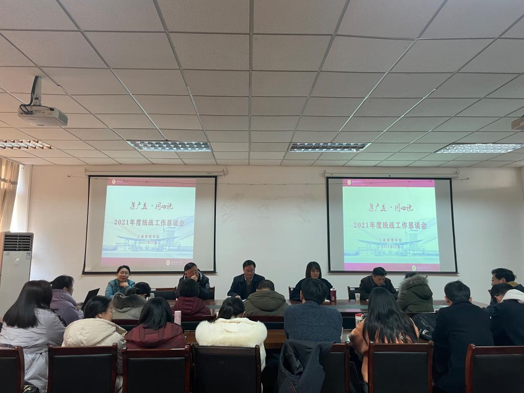 2021年度统战工作恳谈会。学院党委书记杨林、党委委员以及党外人士代表、留学归国代表参加会议。会议由学院党委副书记全真真主持。