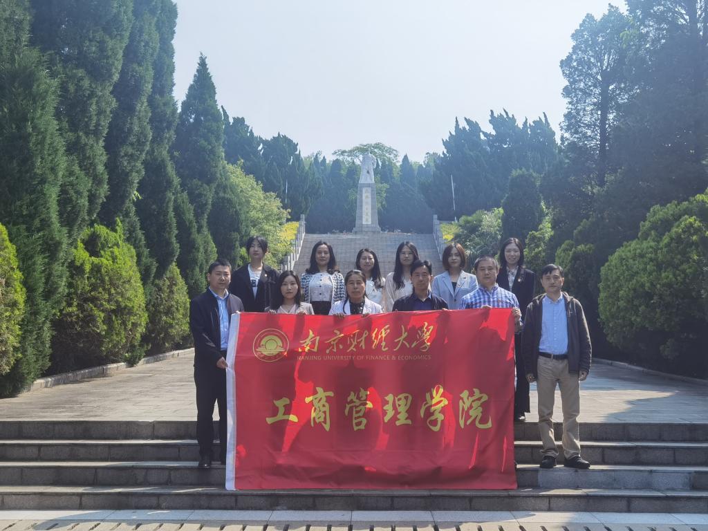 学院一行首先来到桂子山烈士陵园,瞻仰烈士纪念碑,缅怀革命先烈。张杰书记、万绪才院长代表学院向革命烈士敬献花篮。随后,学生代表、研究生党支部书记张萌在烈士纪念碑下发表“强国有我,请党放心”的青春誓言。全体成员在张杰书记的领誓下重温入党誓词。全体成员缓步绕碑一周,深切缅怀革命先烈的丰功伟绩。接着,讲解员深情地向党员们讲述了新四军桂子山烈士们的革命故事,使大家更加深刻地感受到革命先烈们为民族独立自强、为人民幸福生活抛头颅、洒热血、前赴后继、不怕牺牲的精神。最后,在参观陵园的过程中,张杰书记给全体党员上了一堂“行走的微党课”,要求全体党员要弘扬英烈精神,继承英烈遗志,坚定理想信念,锤炼党性,将学习的成果转化为推动工作的强大力量,凝心铸魂,在立德树人的教育征程中实干笃行,勇建新功。