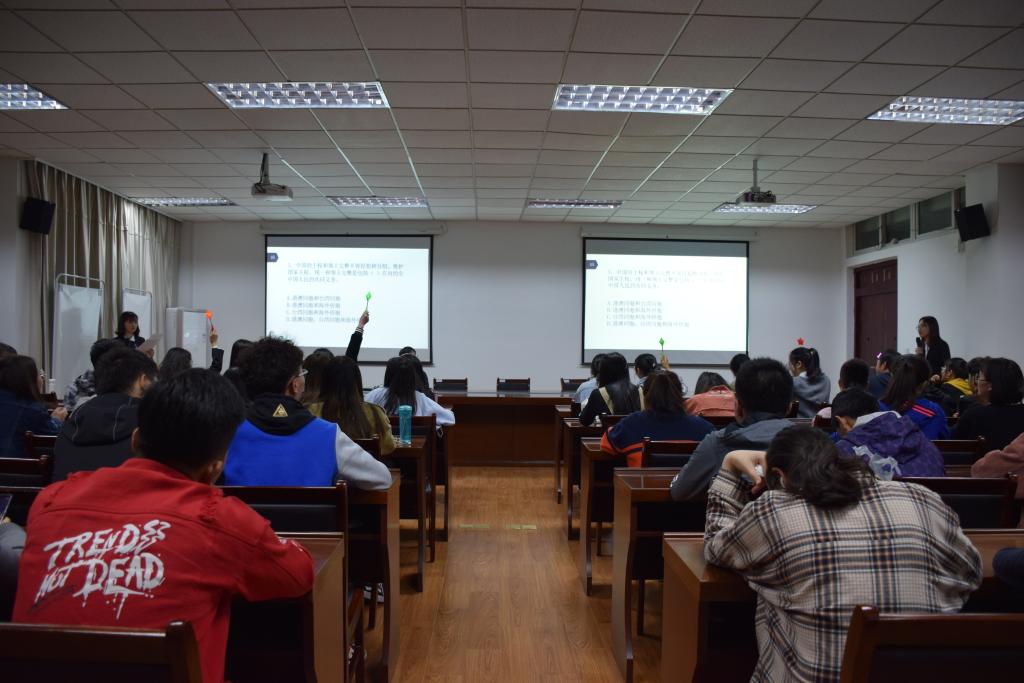 首先,由主持人宣读比赛规则。比赛分为单选题抢答及判断题抢答两轮。经过第一轮的激烈抢答,人资1801以160分的高分居于第一,人资1802以155分紧追不舍,工商1801和工商1802以130分持平,旅游1801以120分居末。第二轮比赛之后,主持人宣布比赛结果。人资1802班获得本次比赛一等奖,人资1801班及工商1801班获得二等奖,工商1802班及旅游1801班获得三等奖,吴越越、杨景楠同学获得最优表现奖,张千禧、盛雨彤、陈燕玉及骆瑶同学获得最佳风采奖,张军全、邹莉、夏雨晴及黄佳凤同学获得了最具潜力奖。最后,曾慧娟老师为获奖选手颁奖。