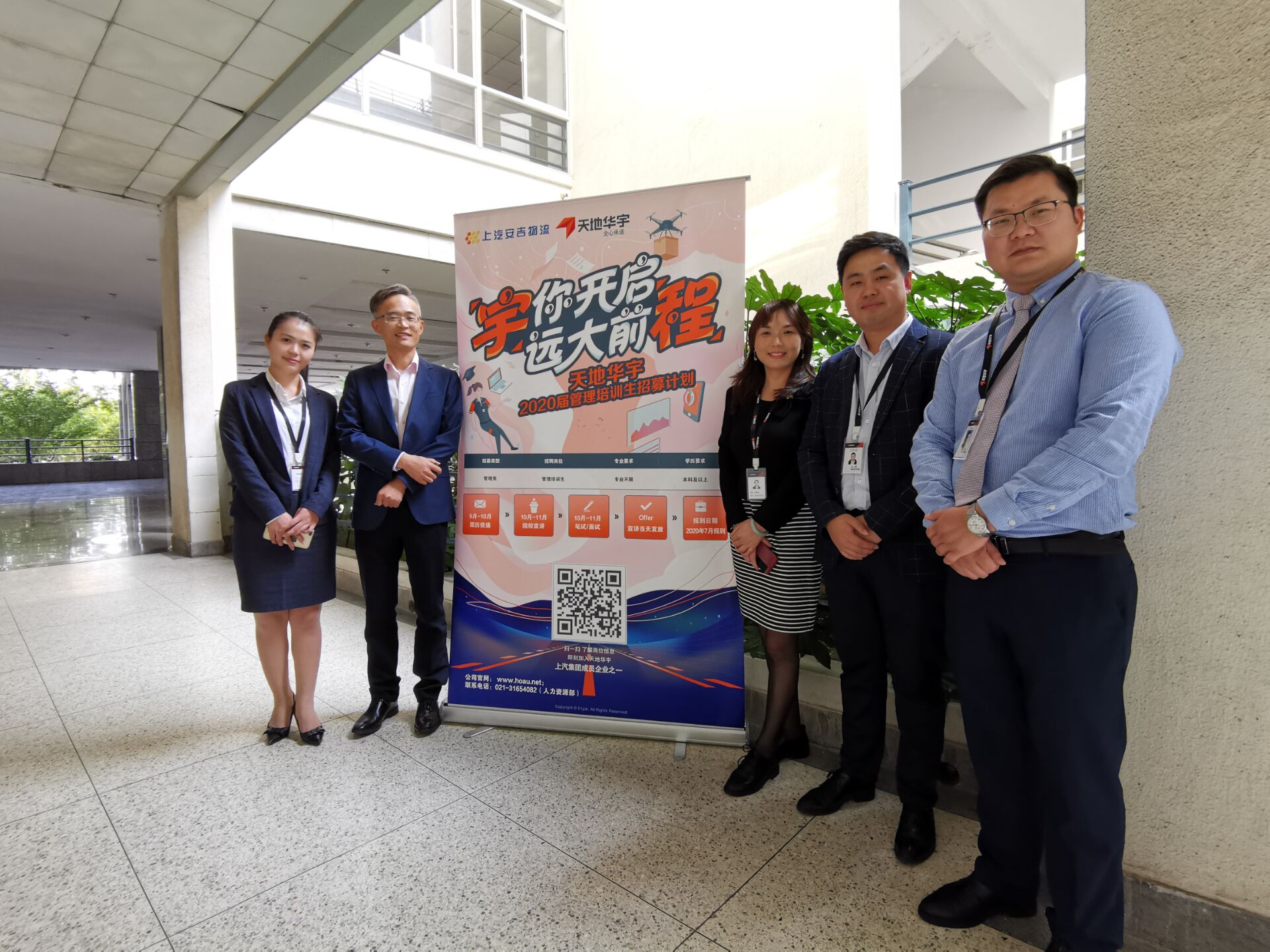 于10月23日下午14:00-17:00在德济楼Z2—116顺利举办了天地华宇2020届管理培训生招聘会活动。出席招聘会的嘉宾有上汽天地华宇江苏事业部总经理郭豪杰先生、江苏事业部人事总监沈维芝女士、江苏事业部昆山大区总经理庄秋华女士、江苏事业部常州大区总经理曾令勋先生,参加招聘会的学生除了本学院的学生外,还有外专业的学生。