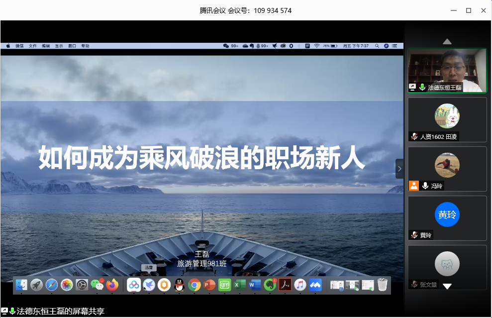 邀请旅游管理98级优秀校友,江苏法德东恒律师事务所执委会执委及管理合伙人、南京市律师协会行业发展与战略研究委员会副主任王磊,为2020届毕业生带来一场题为《如何成为乘风破浪的职场新人》的职前讲座。讲座由2016级辅导员冯玲主持,学院院长助理(分管学生工作)全真真及2020届全体毕业生参加会议。