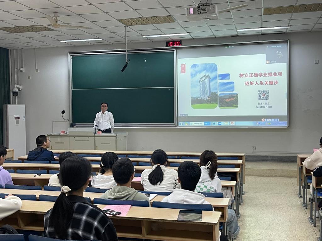旅游管理专业2003届毕业生胡俊在我校仙林校区德正楼116教室作了题为“树立正确学业择业观,迈好人生关键步”的主题讲座,讲座由学工办邱祥霞老师主持,旅游管理专业2021级全体新生参加了此次讲座。
