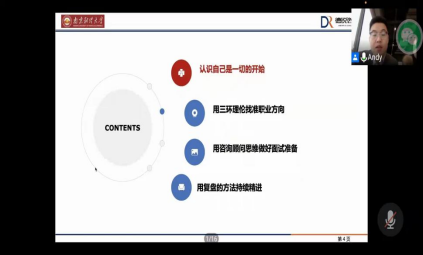 人力资源专业09级毕业生、南京德锐企业管理咨询有限公司的合伙人、项目总监、产品总监李志华通过腾讯会议作了题为“赢在起点”的南财就业讲堂线上讲座。讲座由日本AV女优