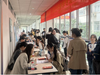 、经济学院、外国语学院在仙林校区德济楼报告厅及报告厅外长廊联合举办“春风送岗,职等你来”2023春季联合专场招聘会。