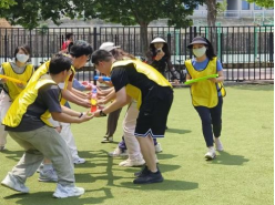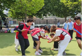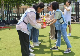接下来的“运粮接力”中,学生与老师齐心协力,稳扎稳打,小心翼翼地传好每一个球,即使失误也毫不气馁。凭借着坚定不移的信念和永不言弃的精神,所有小组都顺利完成了接力,一次又一次的精准传递表现他们“心有灵犀”。最后,工作人员通过各小组的得分决出了本次运动会的前三名,并为所有前来参与的老师和学生颁发奖品。