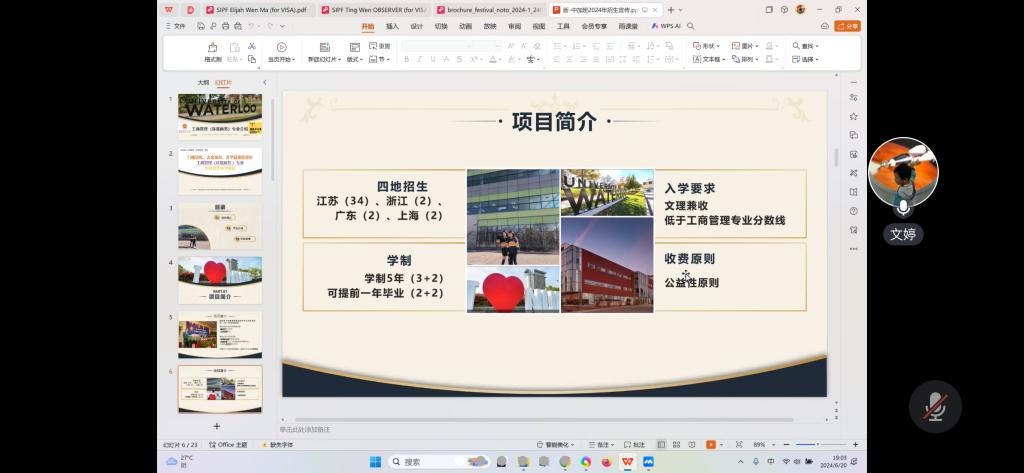 会上,孙理想从历史沿革及概况、师资队伍、学科专业实力、人才培养、对话世界、高质量就业、校园生活、招生政策等方面详细介绍了我校2024年招生政策。工商管理(环境商务)中外合作办学项目主任文婷从项目简介、学业介绍、毕业前景三个方面介绍了我校工商管理(环境商务)专业的办学实力、办学业绩和办学特色。