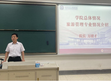 的表达了诚挚的感谢。他从师资力量、学科建设、人才培养等方面详细介绍了学院的基本情况,并介绍了旅游管理专业优势、人才培养定位与特色。