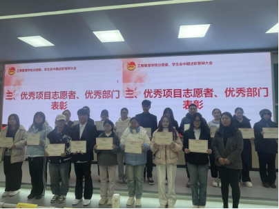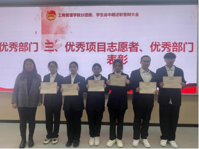 分团委书记赵雪老师以及主席团成员为他们颁奖并合影。