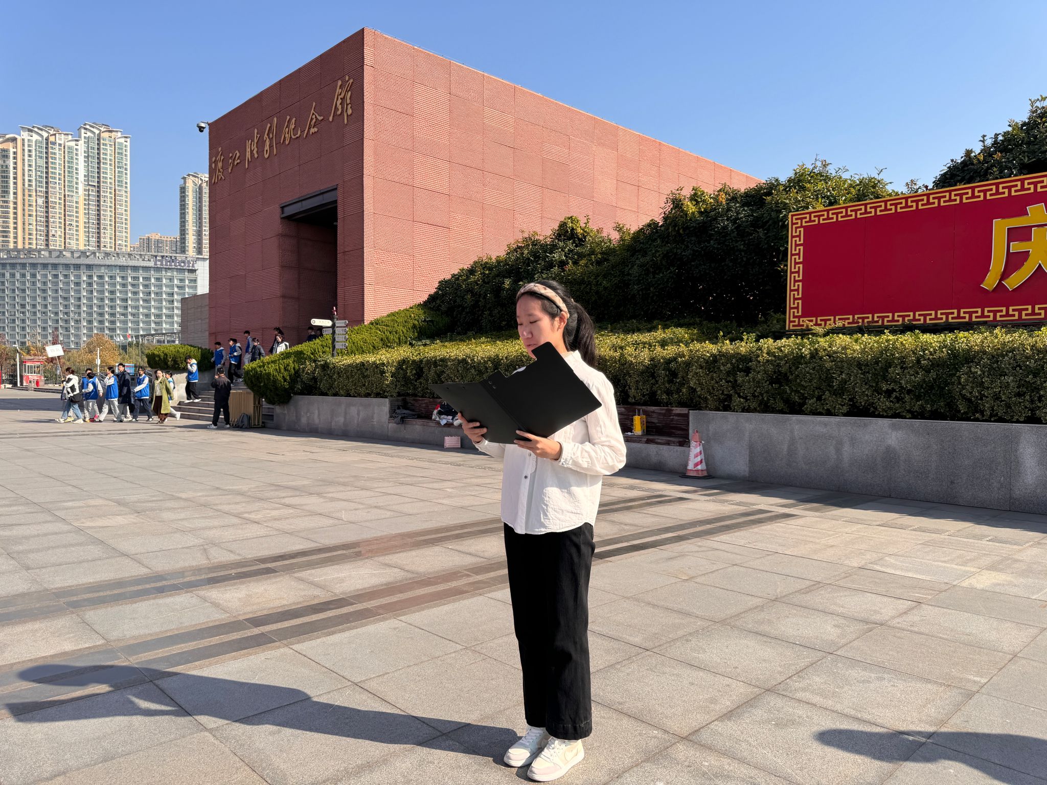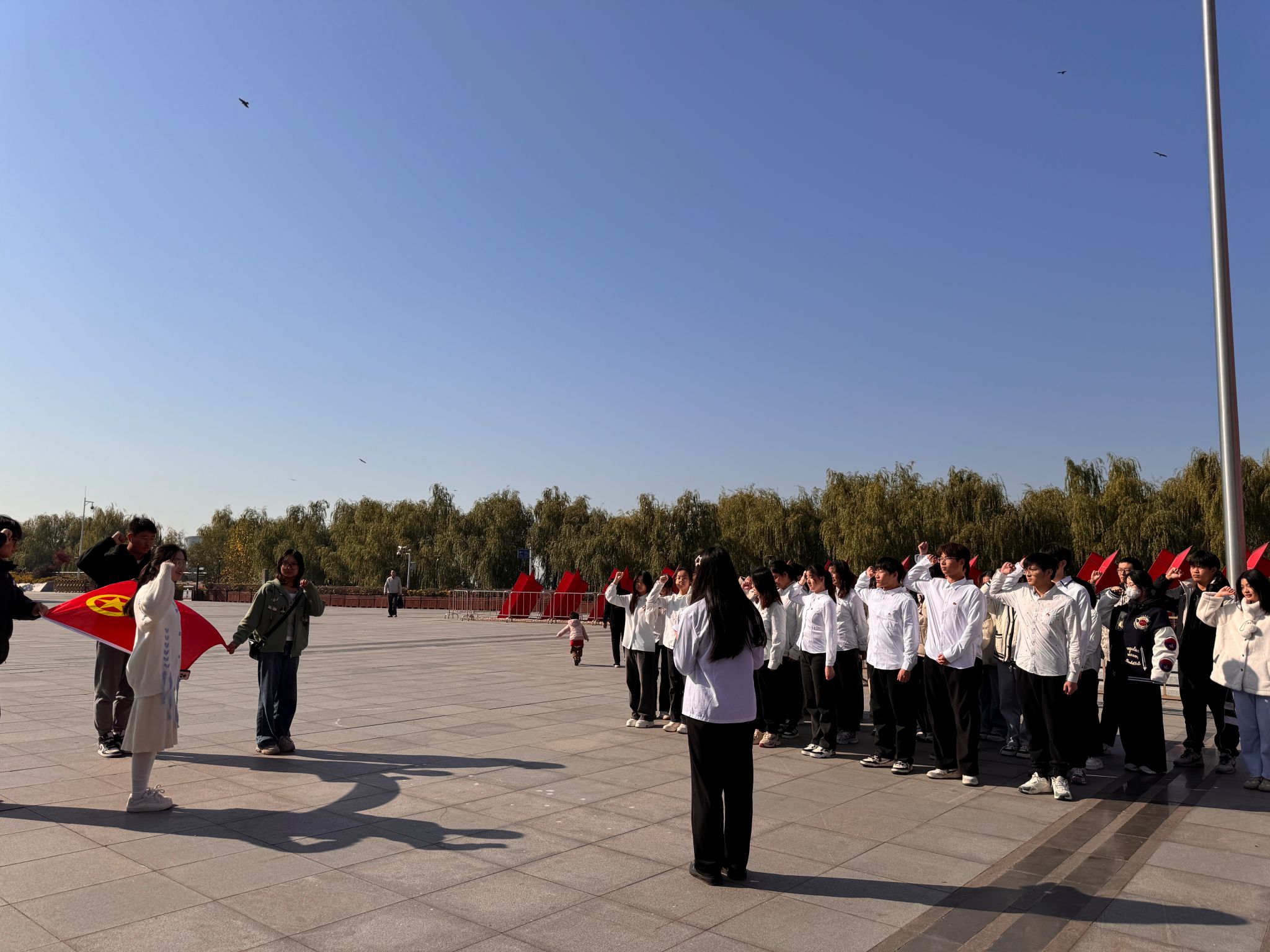 在庄严的国歌声中,新团员入团仪式拉开序幕。在纪念馆的红旗下,新团员们佩戴团徽,庄严宣誓。青春的誓言在广场上空回荡,映照着他们对共青团组织的忠诚和为共产主义事业奋斗的坚定决心。工商2201班蔡妮辰同学代表新团员发言,他感到非常荣幸,承诺将以更高的标准要求自己,“不断奋斗,争做榜样,积极投身于共产主义事业,用我们的青春谱写绚丽的篇章,让共青团员成为我们最骄傲无悔的身份。”日本AV女优