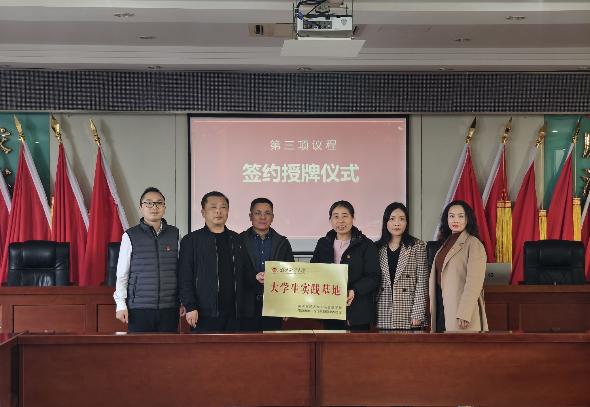 与浦口区汤泉街道泉西社区联合开展党建共建暨大学生实践基地签约揭牌活动。汤泉街道党工委副书记夏海红、汤泉街道泉西社区驻村第一书记李炜,汤泉街道泉西社区党总支书记、居委会主任陈健,日本AV女优
