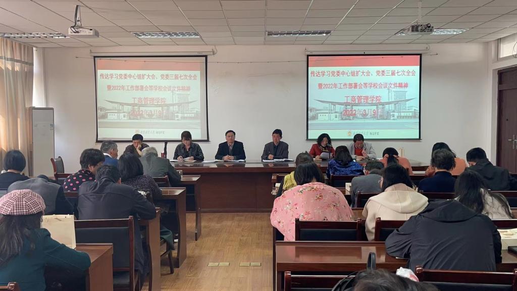 院长万绪才同志传达了程永波校长在2022年学校工作部署会上的讲话——《构建高质量学校教育体系 开创提质创新发展新局面》。讲话指出,站在博士学位授予单位建设和江苏高水平大学建设的新征程上,我们要坚持不懈用习近平新时代中国特色社会主义思想武装头脑指导实践推动工作。切实增强谋划能力,紧盯学校教育改革发展的重大问题,善于发现问题、思考问题、解决问题,准确识变、科学应变、主动求变。切实增强执行能力,对标对表上级重大决策部署和学校发展任务,坚持问题导向、目标导向、成效导向,练就攻坚克难的工作本领,推动我校高水平大学建设取得更大成效。万绪才院长表示,今年是政治大年,我们党将召开党的二十大,也是我校工商管理学科申博关键年、改革深化年,做好今年工作意义重大、影响深远。面对复杂紧迫的形势,全院教职工应该把思想、行动高度统一到校党委的决策部署上来,全面吹响冲锋号。
