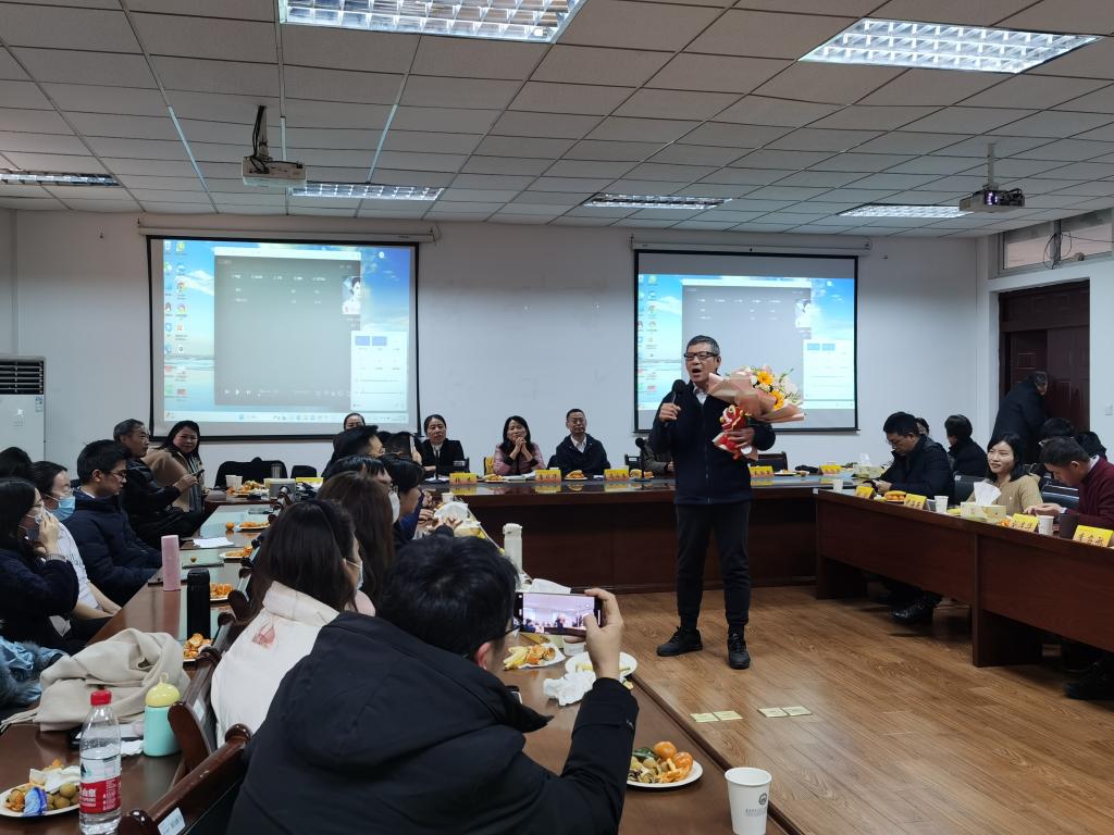 万绪才院长致辞。他代表学院向光荣退休老师致以崇高敬意,感谢各位老师多年来为学院做出的贡献,希望各位老师能够一如既往地关心和支持学院发展,引领和帮助青年教职工成长,为学院的发展建言献策。