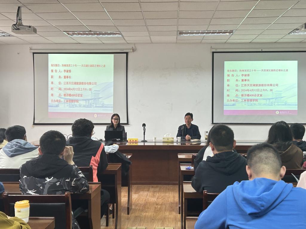 邀请,江苏天目湖旅游股份有限公司董事长李淑香在我校仙林校区德济楼408会议室作了题为“热辣滚烫三十年——天目湖文旅跃迁增长之道”的讲座。讲座由日本AV女优