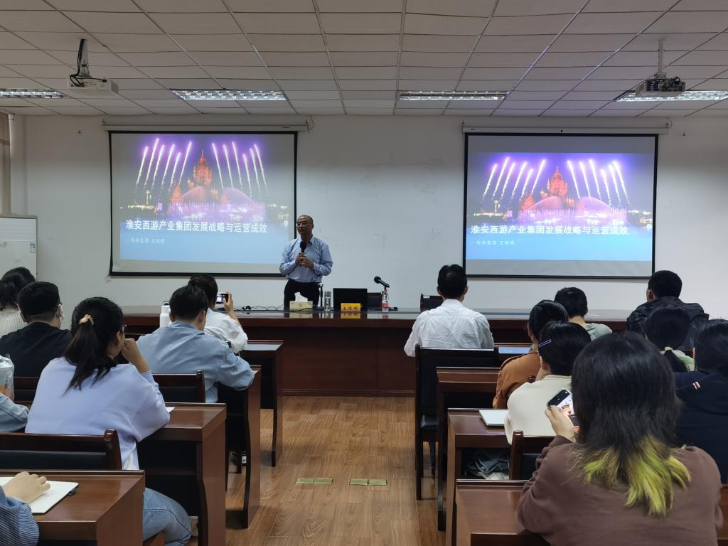 讲座从淮安西游产业集团的发展现状和业绩、淮安西游产业的运作模式以及做好主题文旅项目必备条件三个方面展开。首先,王维明副总经理结合集团发展历程,详细介绍了西游产业集团在发展过程中取得的一系列成果,并指出突破、跳出常规理论系统并与另一个系统产生碰撞火花才能打造新的热点元素这一重要观点。随后,王维明副总经理总结了淮安西游产业“高起点起步、小规模建设、慢节奏开发”的战略要点和运营模式,强调了集团战略是目标和能力的动态组合,两者缺一不可,并重点阐述“考察供应商”思维的重要性。最后,王维明副总经理总结了集团发展经验,他表示集团将继续秉持高效运营和创新意识,不断开拓进取,实现更加辉煌的成就。
