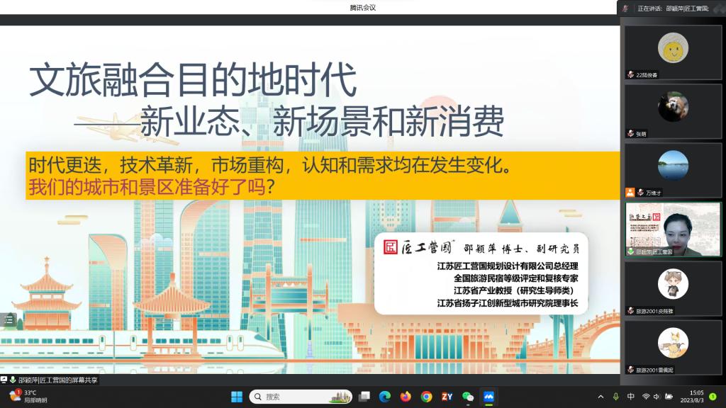 邀请,江苏匠工营国规划设计有限公司总经理、江苏省产业教授邵颖萍通过腾讯会议作了题为“文旅融合目的地时代:新业态、新场景和新消费”的讲座。讲座由日本AV女优
