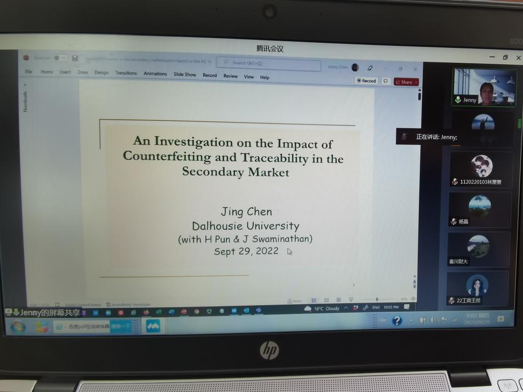 陈静教授首先讲述了这一研究问题的背景,介绍了加拿大、中国等二手市场的状况和规模,同时也指出大众对二手物品的接受程度正在不断扩大。但由于对商品的真伪信息了解不够全面,消费者在二手市场购买到假货的现象较为常见。虽然消费者是在不知情的情况下购买到假货,但这会对品牌制造商的声誉带来损害。为应对这一挑战,可追溯性技术(例如,区块链技术)可作为一种前沿的解决方案。讲座主要介绍利用可追溯性技术应对二手市场假冒产品问题时对供应链成员企业相关决策与利润所带来的影响。经过模型的建立和结果分析,得出品牌商制造商在某些条件下,尽管可以无成本地使用可追溯性技术和承担声誉损害,也不会采用可追溯性技术。可追溯性可对二手商品经销商不利,但对造假者有利。当假冒商品的质量较差时,可追溯性降低了消费者剩余。同时指出了可追溯性实施的条件:当假冒产品的质量足够低,才应该采用可追溯性。只有当假冒产品的质量处于中等水平时,品牌商制造商采取的可追溯性技术,对制造商、经销商和消费者的双赢局面才会实现。
