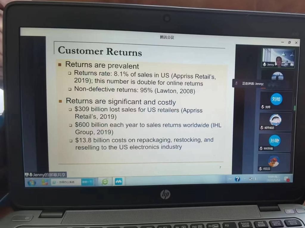 陈静教授首先对顾客退货现象进行了详细介绍,通过数据展现退货是零售业普遍的问题,并结合实例对顾客退货的原因进行深入分析,举例说明不同商家实施的不同的退货策略,重点说明了全额退款策略的优点和缺点。对于如何管理退货问题,陈静教授指出了战略库存、二次销售、再生产这三种方式,本次报告讲解的报告是关于存在战略库存的供应链两期定价、订货及退货决策的问题。在此基础上,陈静教授通过文献回顾,指出了论文的研究动机和研究问题,零售商什么时候应该考虑战略库存?零售商是否应该同时使用战略库存和退货产品?考虑到零售商可能有库存和两种退款策略,供应商如何定价?零售商的退货策略对供应链的其他成员的决策有什么影响?接下来,陈静教授讲解了论文的研究框架,包括供应商的批发价格决策,零售商的两期退货策略、零售价格和战略库存,顾客的购买决策。通过博弈论的方法建设了研究模型,指出了五步的决策顺序。研究发现,第一时期的顾客退货可以作为零售商的战略库存的替代品;利用战略库存可以使供应商在第二时期设定较低的批发价格;当零售商实施全额退款政策时,更少有机会考虑战略库存;是否实施战略库存取决于零售商的退货政策(全额退款或不退款)、单位库存费用、以及顾客在第二阶段对产品的估价折扣;全额退款策略不总是对零售商有利,存在一些区域,全额退款和不退款策略都可以实现对零售商和供应商都有利。