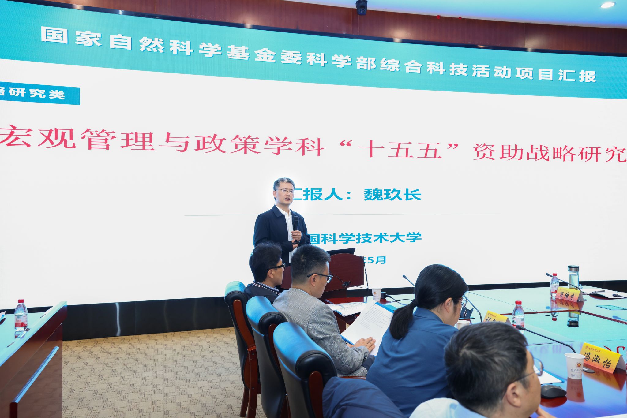 在专题汇报环节,宏观管理与政策学科“十五五”战略规划负责人、中国科学技术大学公共事务学院执行院长魏玖长教授从宏观管理与政策研究的国家需求、资助现状、分支学科发展态势、学科资助的国际比较等方面汇报了学科战略规划;西安财经大学校长赵敏娟教授聚焦人工智能驱动的农业资源管理研究转型,汇报了AI在农业生态监测、智能决策等方面的综合价值;南京大学毕军教授探讨了环境管理与政策研究在新时代背景下遭遇的科学与实践挑战;复旦大学校长助理吴力波教授详细介绍了人工智能赋能可持续科学的范式转变。
